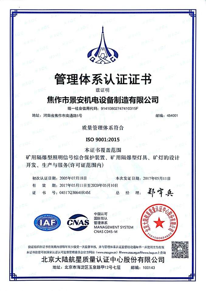 焦作市景安機(jī)電設(shè)備制造有限公司(原焦作市無線電一廠),是國家重點(diǎn)生產(chǎn)礦用防爆電子電器產(chǎn)品的專業(yè)企業(yè),全國煤炭行業(yè)機(jī)電產(chǎn)品定點(diǎn)生產(chǎn)單位,中國電器工業(yè)協(xié)會(huì)防爆電氣分會(huì)理事,市級(jí)礦用隔爆型工程技術(shù)中心,公司占地30000平方米,廠房10000平方米,ISO9001:2008質(zhì)量管理體系和A級(jí)計(jì)量認(rèn)證企業(yè)。